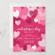 Personalised Pink Hearts Valentine's Day Brunch Invitation. Custom name and address Valentine's day dinner party invitations magenta with pink hearts.