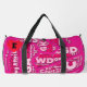 Personalised netball gift idea pink duffle bag with heart design and name initial. Great gift idea for netball players.