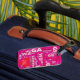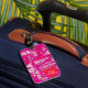 Personalised netball gift idea pink luggage tag with heart design and name initials. Great gift idea for netball players.
