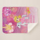 Any little princess would love this comfortable pink sherpa blanket on a cool night.  Has all the things a princess loves, a castle, crowns, a coach, and a cute princess riding a unicorn.