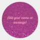 Personalised pink sparkling glitter classic round sticker