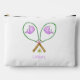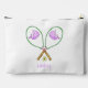 Keep your tennis essentials stylishly organised with this personalised accessory pouch featuring a fun preppy design of pink tennis rackets with purple whale head covers and three tennis balls. Add a name or monogram to make it uniquely yours — perfect for storing grips, wristbands, makeup, or small on-the-go items inside your tennis tote or bag.