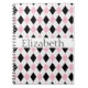 Personalised Pink White Black Argyle Pattern Notebook