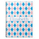 This is trendy and chic beautiful personalised guest notebook design. This notebook feature is Pink White Blue Argyle Pattern background. Personalise with your name and other text.