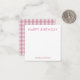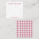 Personalised stationery enclosure notecard with a pink gingham pattern in notes of dark deep and vibrant rose pink bubble gum and white with the sentimental words "HAPPY BIRTHDAY". Tuck it into a flower bouquet or meaningful gift. These minimal flower shop inspired enclosure cards bring a retro kitchen vibe to your most thoughtful moments.