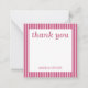 Personalised stationery enclosure notecard with a pink pin stripe pattern in notes of dark deep and vibrant rose pink bubble gum and white with the sentimental words "thank you". Tuck it into a flower bouquet or meaningful gift. These minimal flower shop inspired enclosure cards bring a retro kitchen vibe to your most thoughtful moments.