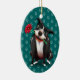 Are you or do you know other friend or family members who are pitbull owners? These teal blue personalised pitbull Christmas ornaments make for a unique and wonderful Christmas tree decoration! The design depicts a black and white American pitbull terrier with a red flower in its mouth and the caption on the back that reads: "A Lover Not a Fighter." This message hits home for those that feel strongly about putting a stop to pitbull fighting or animal abuse. Want to change the text? Easy to do! Change it to the name of the pitbull in your life or to something else... This pitbull xmas ornament template is easy to modify. Category: English pitbull ornaments; personalised dog ornament; and. Colours: black, white, teal blue and red.