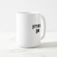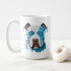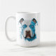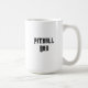 White Pitbull with blue eyes AI art dog lover's coffee cup with text that says Pitbull Dad but you can change that to say what you want.