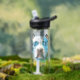 White Pitbull with blue eyes AI art dog lover's water bottle with text that says Pitbull Dad but you can change that to say what you want.