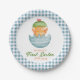 Looking for the perfect addition to your baby's first Easter party or first birthday celebration? Look no further than these charming paper plates featuring a baby blue plaid background and a cute chick emerging from a broken egg, all in a delightful watercolor design.