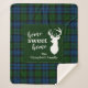 Cute home sweet home Christmas blanket you can easily customise by clicking the "Personalise" button, Featuring deer silhouette and clan Campbell Military tartan in green blue chequered pattern.