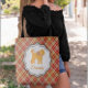 Personalised Plaid Doodle Golden Yellow Dog Tote Bag