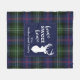 Cute home sweet home Christmas blanket you can easily customise by clicking the "Personalise" button, Featuring deer silhouette and clan Sutherland tartan in green and purple chequered design.