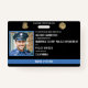 The customisable police department ID badge features a police emblem at the top that can be customised to your department as well as a place for the state logo as well. Customise with the officer's photo on the left. Beside the photo, the officer’s name, badge number, rank, and department are displayed. Add your own barcode to the back of the card, along with issue and expiration dates, and description of the officer, captain, chief, or office employee.
