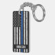 Thin Blue Line Keychain - American flag in Police Flag colours, distressed design . Personalise with police officers name, family name or department . This personalised police keychain is perfect for police and law enforcement departments, families and all those who support them . COPYRIGHT © 2020 Judy Burrows, Black Dog Art - All Rights Reserved. Personalised Police Officer Thin Blue Line Keychain
