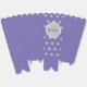 Lavender background with grey polka dots... grey centre circle with lavender lettering... white accents...