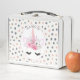 Pretty, personalised whimsical watercolor pastel unicorn with florals, back to school metal lunch box, with a cute polka dot background. Add your name for a magical unicorn theme for girls.