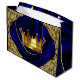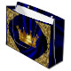 Prince baby shower gift bag with beautiful gold crown on an elegant royal blue and gold background. This prince gift bag is easily customised with the text of your choice, and you can move and resize the crown as needed.