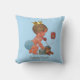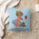 Personalised elegant vintage little prince blue throw pillow. A beautiful vintage illustration of a cute and adorable baby boy with stylish blue diaper and a gold crown. He is talking on an old red retro telephone telling you that he is on his way! He is holding a little blue suitcase and his quirky teddy bear is leaning against it - he's all packed up and ready for his arrival! The background is a pretty blue colour with grey customisable text. Perfect for a baby shower gift / new baby gift. If you need any assistance customising your product please contact me through my store and I will be happy to help. I have matching products in my store.