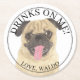 Personalised Pug Dog Wedding Round Paper Coaster