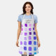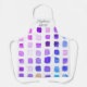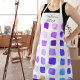 This apron is decorated with a pattern of colour samples in shades of purple.