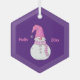 Customise this winter snowman wearing purple accessories Christmas holiday ornament with any name and year.