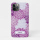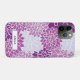 Personalised purple flower pattern iphone case. Shades of purple floral pattern with small name field in block text at bottom centre.
