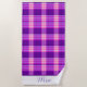 This trendy and preppy plaid beach towel features a vibrant mix of purple and pink hues.