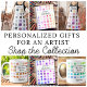 This apron is decorated with a pattern of samples of watercolors in shades of purple.