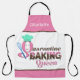Personalised Quarantine Baking Queen Apron with chocolate brown lettering and pink and white frosting, a whisk and chef's hat.The perfect gift for anyone who baked their way through the Covid Quarantine!