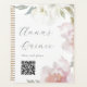 This beautiful quinceanera planner coordinates with the pink floral mis quince 15 years collection found in this store. Pretty airy watercolor pink and white flowers and elegant calligraphy script with your custom name are included on the front cover, along with an editable qr code to add your quinceanera planning website and easily look over plans from one space to the other. The back is a delicate blush pink cover with the pretty pink and white blooms.