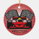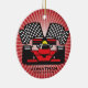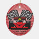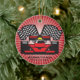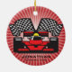 Personalised Race Car Ornament against a starburst background. All text customisable, front and back!