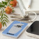 Keep your keys secure or create a personalised gift that's perfect for fans of raccoons. This keychain features a cute illustration of a racoon peering out of a garbage can with your name below in bold black lettering. All set against a light blue background.