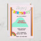 A vibrant birthday card featuring colourful, wavy paper cutouts that create a rainbow-like frame. Perfect for a cheerful and festive celebration.