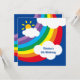 A wonderful weather themed pattern including white fluffy clouds, sunshine and a large rainbow. The back is also covered with a rainbow.