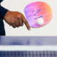 This girly Ping Pong Bat is decorated with an atmospheric ombre design in shades of pink, coral and purple.