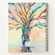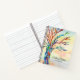 This unique Notebook features a mosaic tree in the colours of the rainbow on a watercolor background.