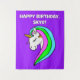 This fun party design features a bright background colour and a happy rainbow mane unicorn. Personalise with your own name and/or message! There are many coordinating event items available!