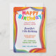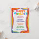 A vibrant birthday card featuring colourful, wavy paper cutouts that create a rainbow-like frame. Perfect for a cheerful and festive celebration.