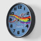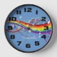 White musical notes floating on a rainbow of swirling colours on a bluebackground. The background colour can be changed by clicking on the customise button. Customise the text to create a unique personalised musical design clock. Perfect for the music lover.