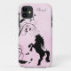 Personalised Pretty Pink Rearing Silhouette Horse and Flowers iPhone 5 Case.