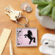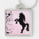 Personalised Pink Rearing Silhouette Horse and Flowers Keychain.