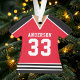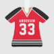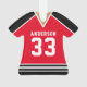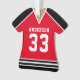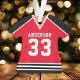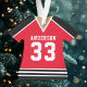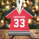 Celebrate your hockey star with this personalised red and black hockey jersey ornament. Perfect for commemorating a special season, player, or team. Customise it with a name and number to create a unique keepsake.
