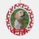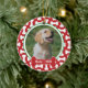 This adorable holiday ornament features a favourite photo of your dog and a bones print background in festive holiday colours. There's a large bone where you personalise with your pet's name in the front and your message at the back.