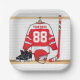 Personalised Red and White Ice Hockey Jersey Paper Plate