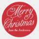 Personalised Red And White Merry Christmas Classic Round Sticker