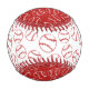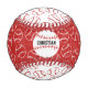 For the baseball fan, a fun design featuring a baseball with customisable text for the name or initials of the baseball player on a background pattern featuring a white outline of baseballs on a red background.