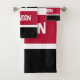 Personalised Red Black White Striped Bulldog Bath Towel Set