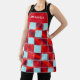 Personalised Red Blue Plaid Pattern Name Apron. Add your name.