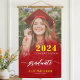 Celebrate your graduation in style with our custom Graduation Party Banner! Featuring a vibrant photograph of a young woman in a red graduation cap and boho-style dress, this banner captures the essence of joy and accomplishment. Surrounded by a serene boho-inspired background with wildflowers, a rustic wooden bench, and a picturesque tree-lined path, this banner is both elegant and natural. Add your name, school, and class of 2024 details for a personalised touch. Ideal for any graduation party, this unique design combines modern elegance with floral accents, bold text, and a retro vibe. Click to customise your banner today and make your graduation celebration truly unforgettable!
